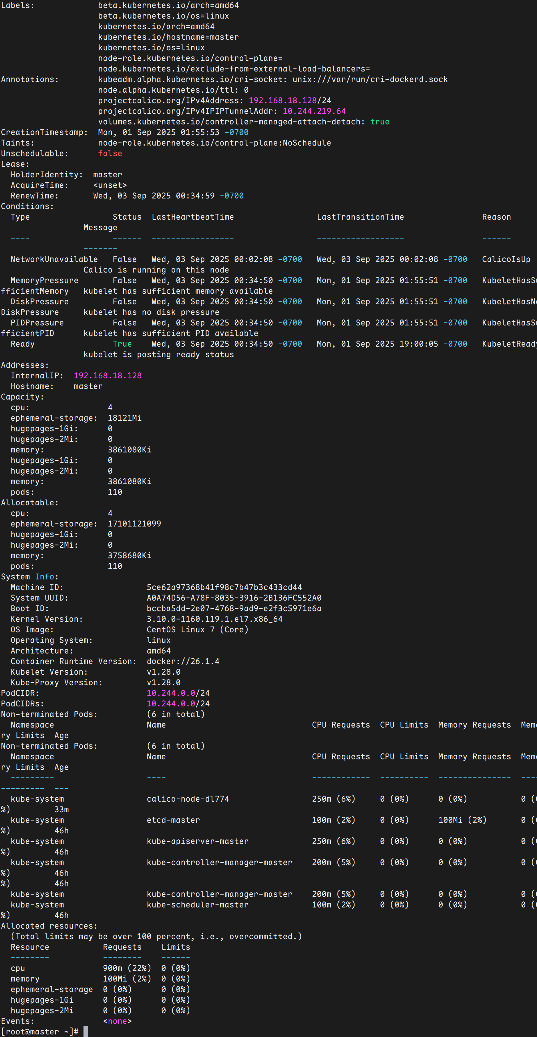 kubectl describe node master