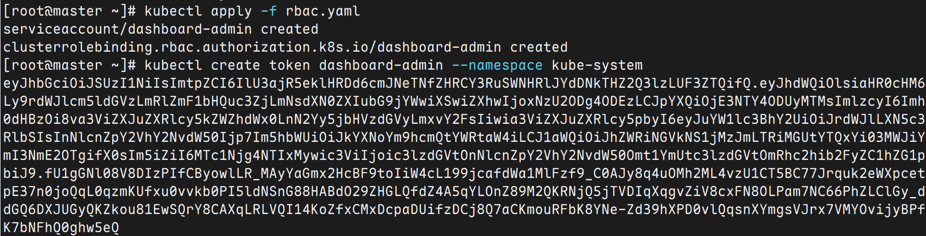 kubectl create token dashboard-admin --namespace kube-system