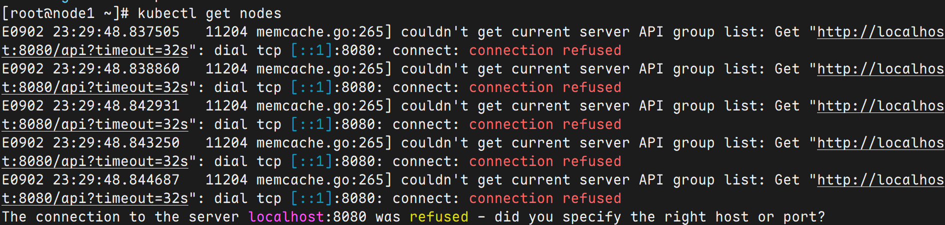 使用kubeadm安装如果想在node节点管理就会报错