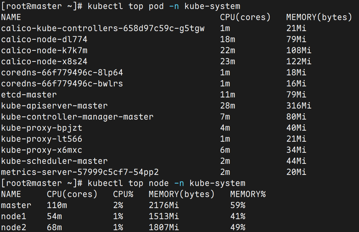 kubectl top pod -n kube-system