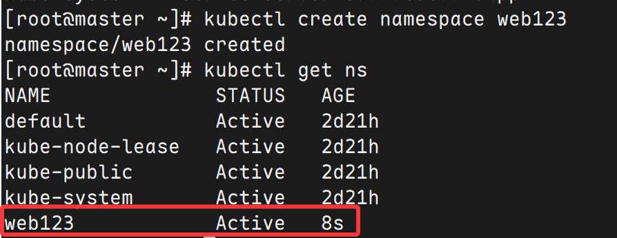 kubectl create namespace web123