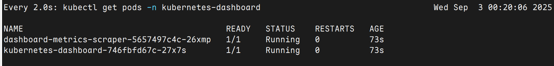 kubectl get pods -n kubernetes-dashboard
