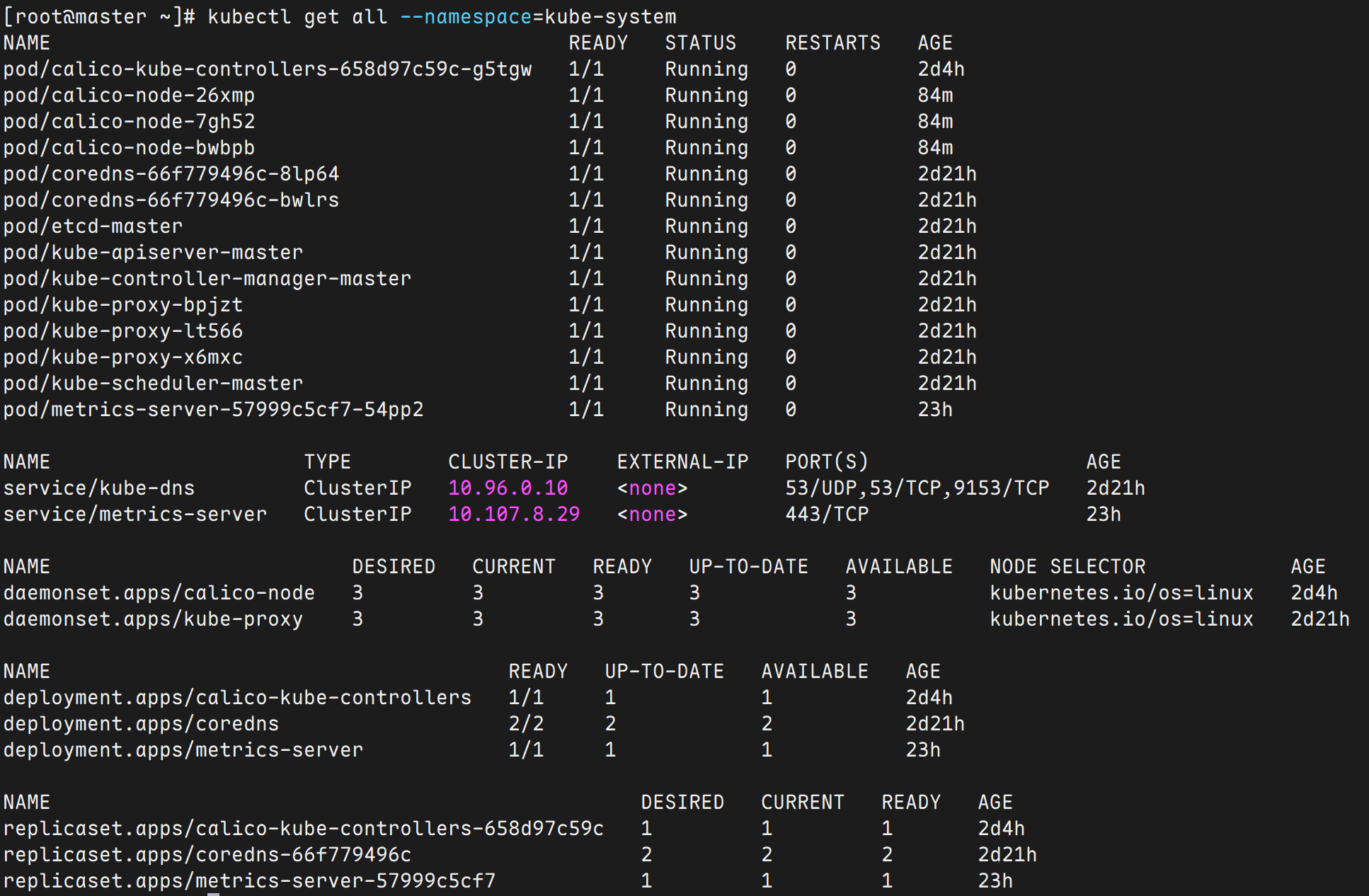 kubectl get all --namespace=kube-system