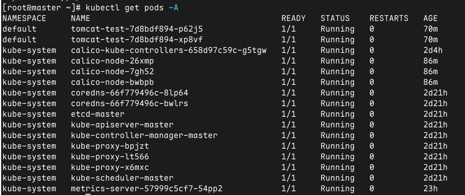 kubectl get pods -A