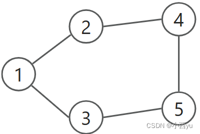 我们通过节点3走向了节点5。然后返回到节点3,与节点3相连的节点1和节点5都已经被遍历过了,所以我们回退到节点1,此时与节点1相连的节点2和节点3都已经被遍历过了,dfs退出。