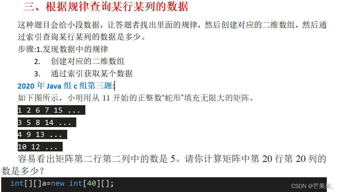 这篇博客探讨了如何使用递归算法来解决n行n列数字排列的问题,给出了具体公式n行n列=(n-1)+4*(n-1)。代码示例中展示了如何用Java实现这一计算过程。