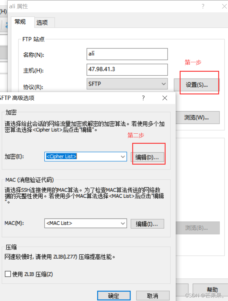 3、高级选项中的<Cipher List> 后的编辑