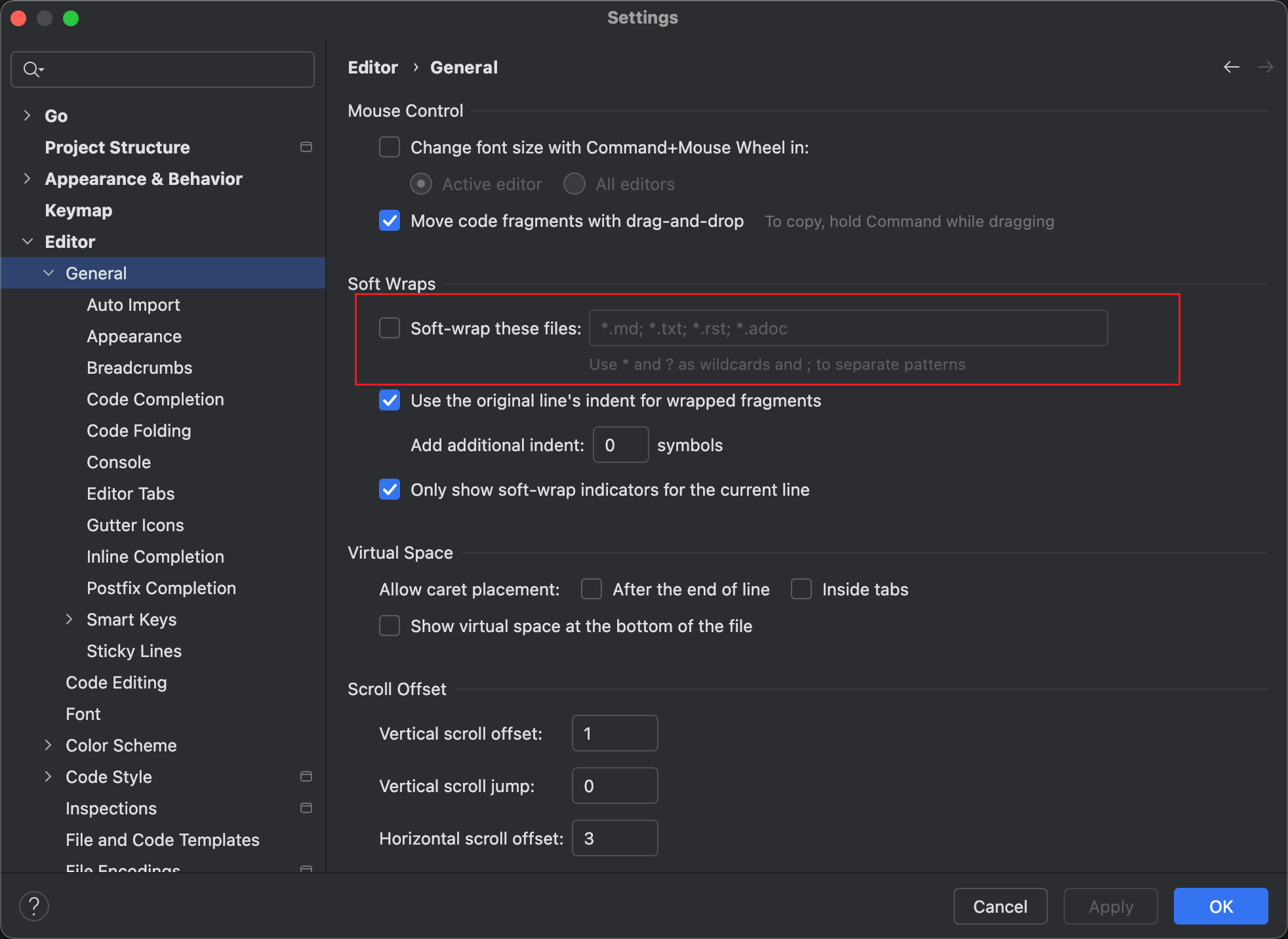 Goalnd 代码自动换行
