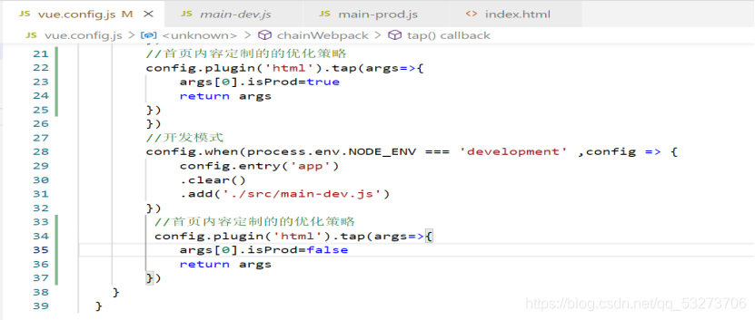 (3)使用chainWebpack自定义打包入口(将开发和发布的入口分离开,方便各自配置)