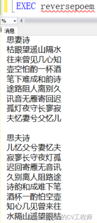 2. 写一个存储过程ReversePoem,实现如下格式输出