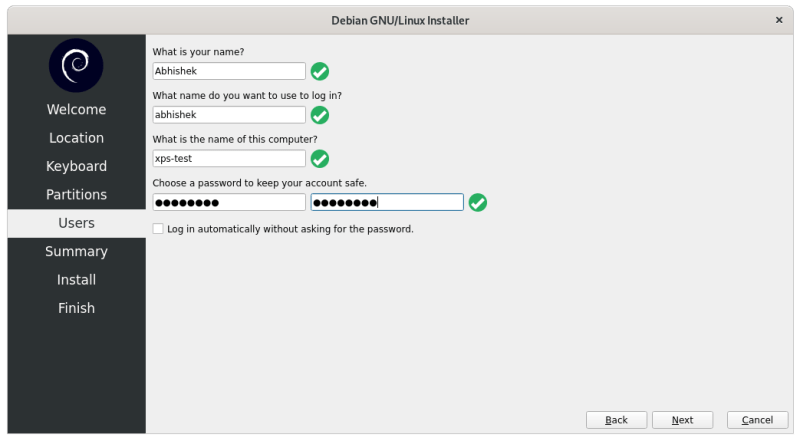 这也意味着你可以用新创建的用户使用 sudo 。在“复杂的 Debian 安装”中,你也可以设置 root 密码,但这样你就必须手动将普通用户添加到 sudoer 列表。看看,这种安装过程是不是对新手来说很容易?