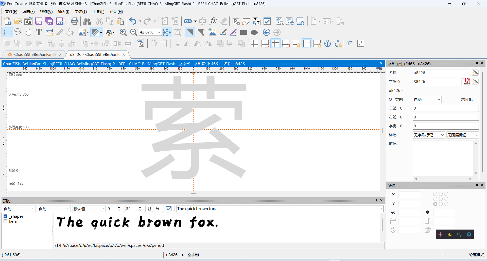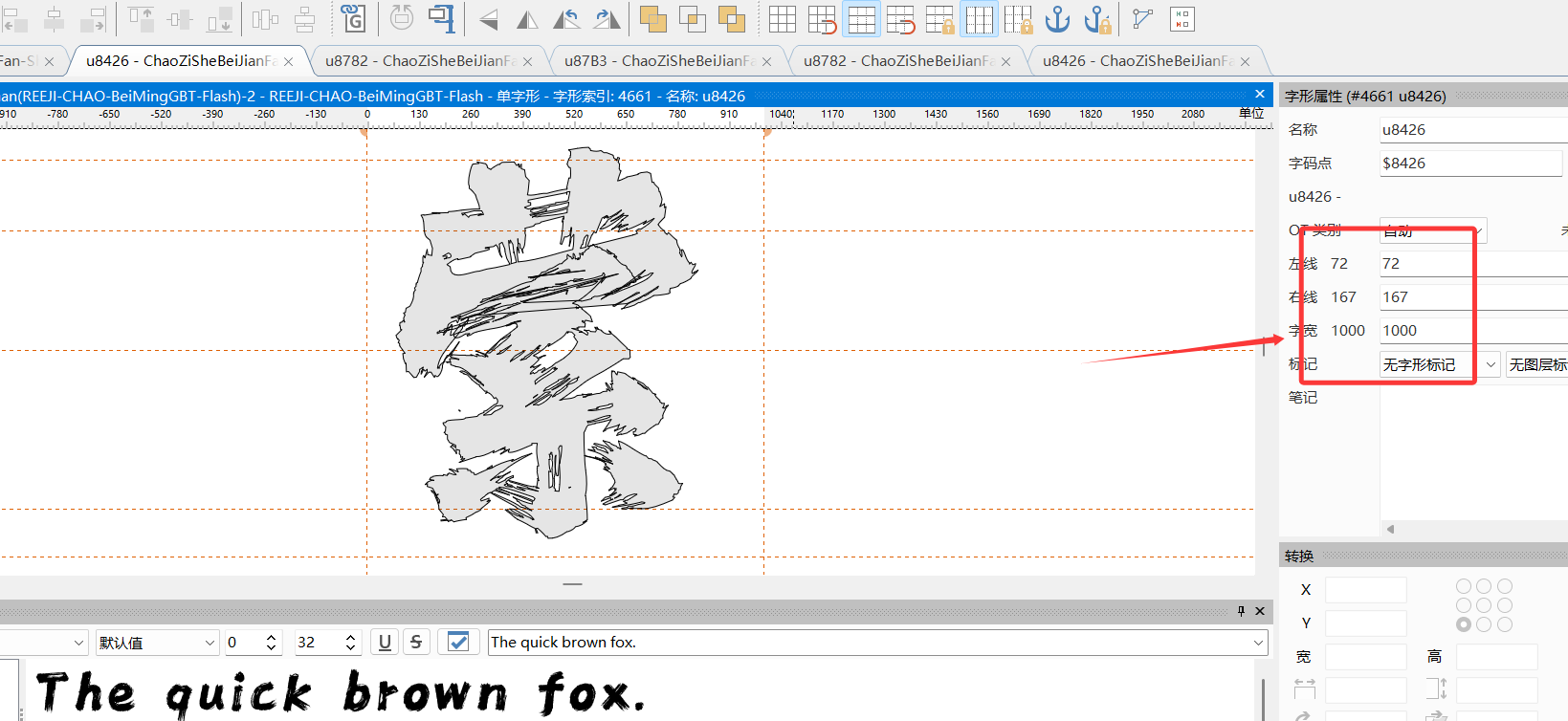 输入与“萦”同样的上下结构文字,“莹”,选择描点,细心一步步去除不要的部分,然后输入“系”