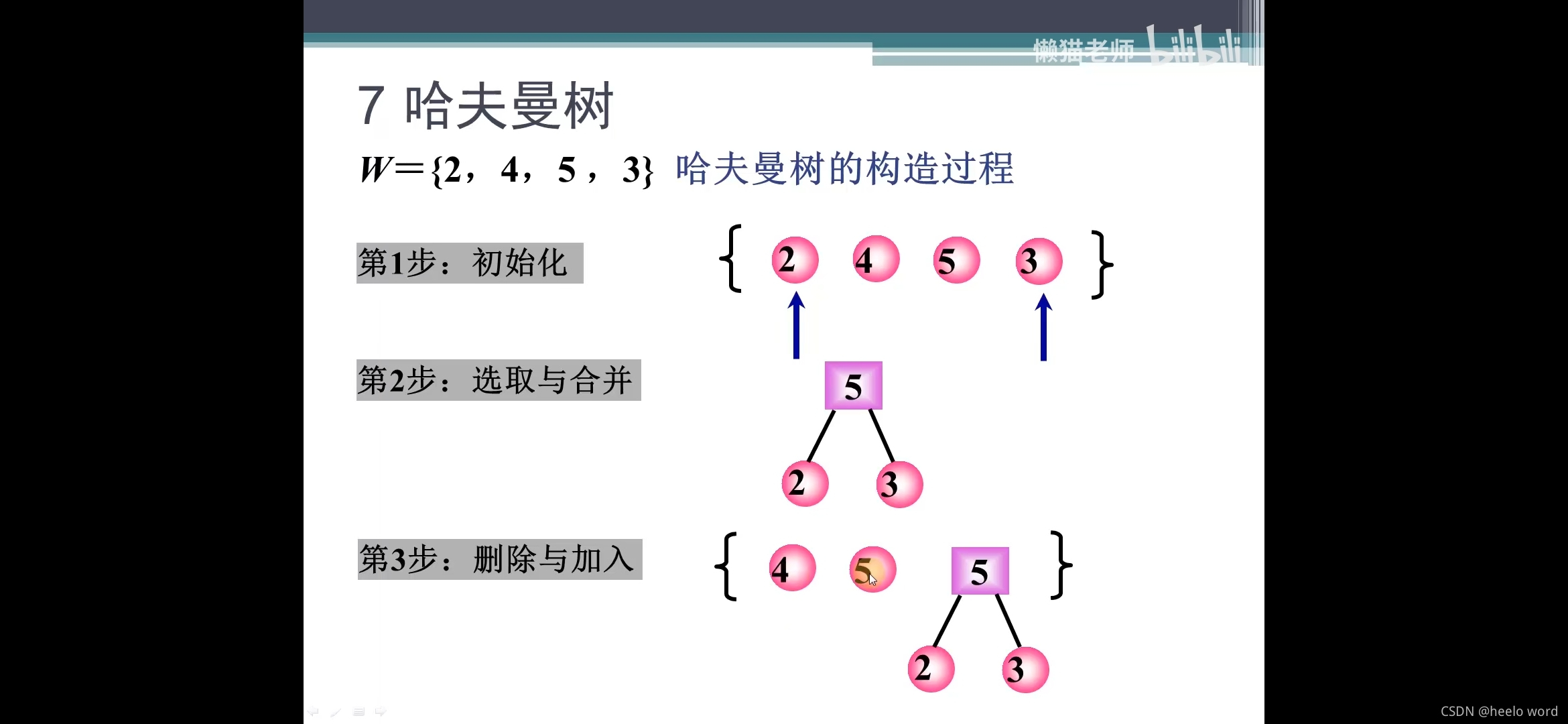 3.进行n-1次合并, (当有3个元素是需要合并两次)所以要合并n-1次