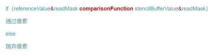 - 渲染过程中,可以用这个值与预先设定好的参考值作(ReferenceValue)比较,根据结果来决定是否更新相应的像素点的颜色值。这个比较的过程就称为模板测试。