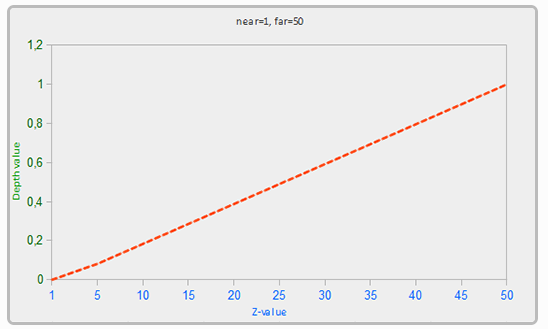 - 深度缓冲区中存储的深度值为[0,1]的非线性值