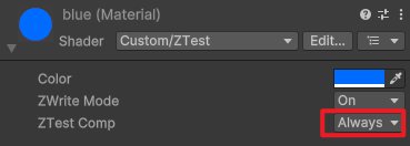 ZTest LEqual //如果透明物体前有不透明物体,此时透明物体看不到;如果透明物体后面有不透明物体,此时透明物体可以看到。