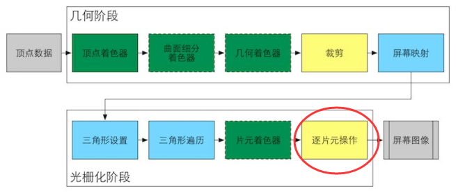 逐片元操作是说是由管线/硬件自身规定好的,我们只能对里边的内容进行配置。