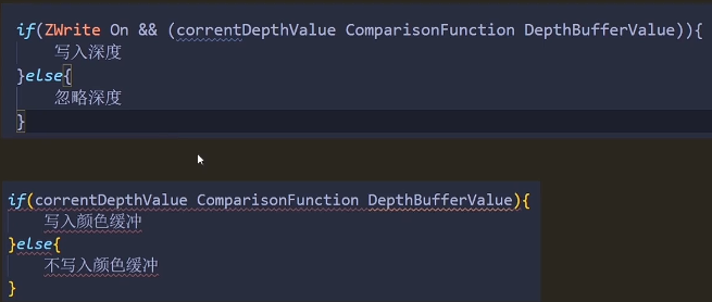 - 最重要的两个值:当前深度缓冲区的值(ZBufferValue)和深度参考值(ReferenceValue)。通过比较操作还实现理想的渲染效果