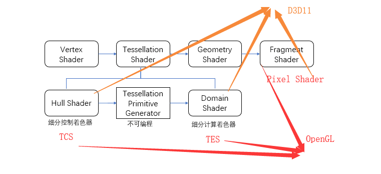 Tessellation Shader又分为:Hull shader 、Tessellation Primitive Generator 、 Domain shader: