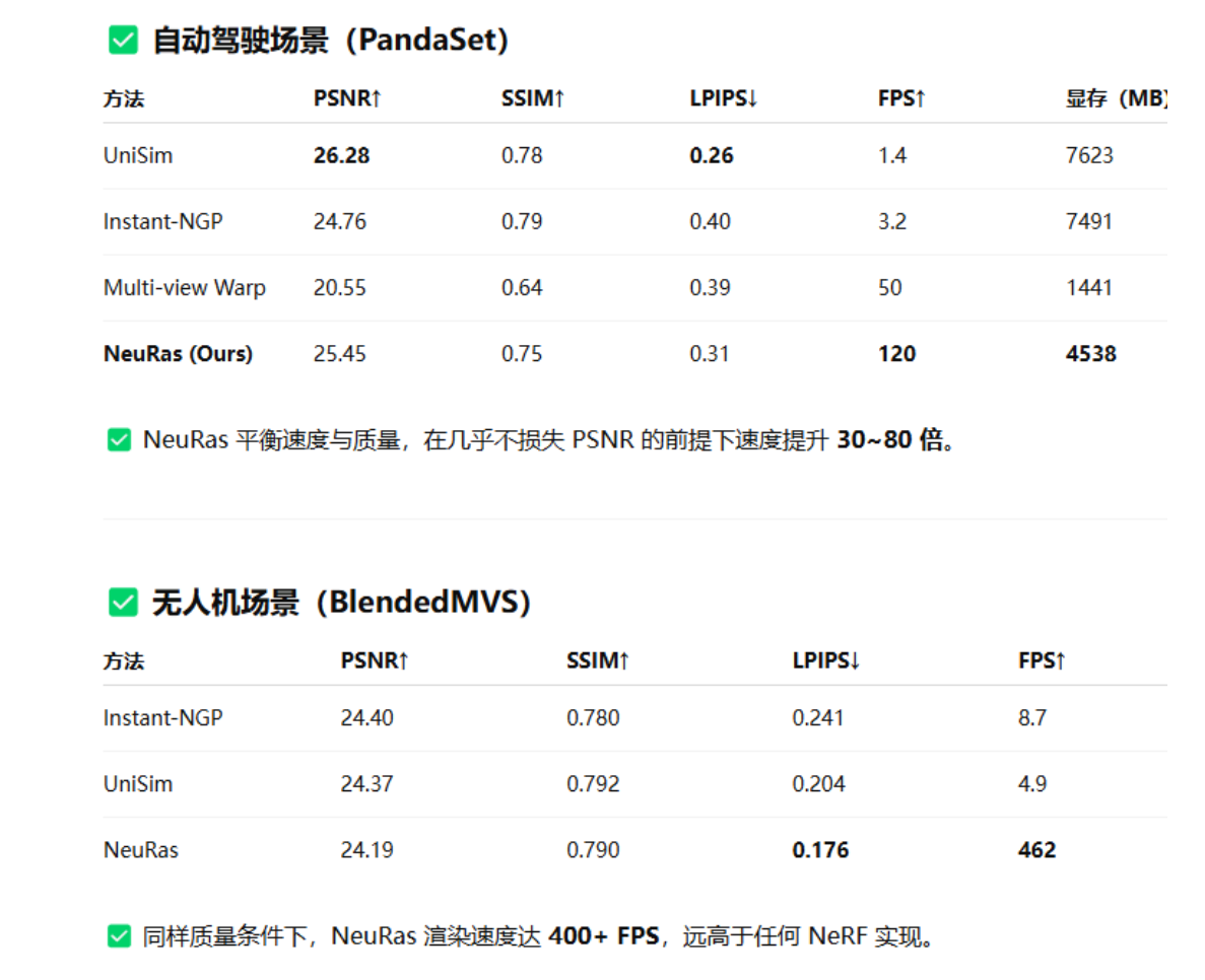 | 特性 | NeuRAD 表现 | 对比说明 |