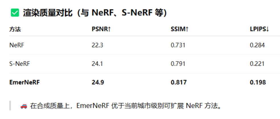| 运行效率 | ✅ 快速训练/渲染 | 优于MARS/SUDS |