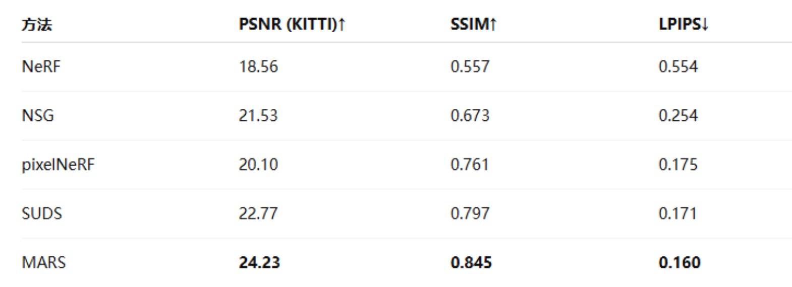 | MARS | 自定义 NeRF 模块拼接 + KITTI数据预处理 | 需3D检测 + tracklet 标签 | ⭐⭐⭐ 中等 | 需一定显存资源(>=24G) | ⭐⭐⭐⭐ |