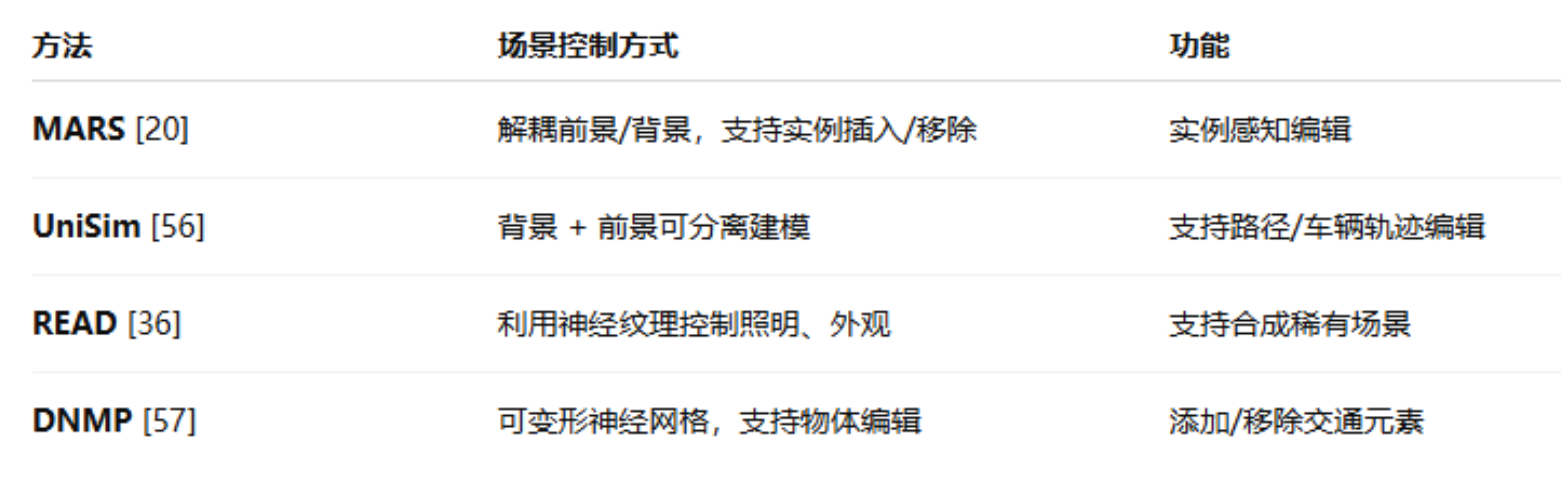 | 场景编辑 | ✅ 插入/编辑/模拟 actor | SUDS 支持较弱,MARS支持但较复杂 |