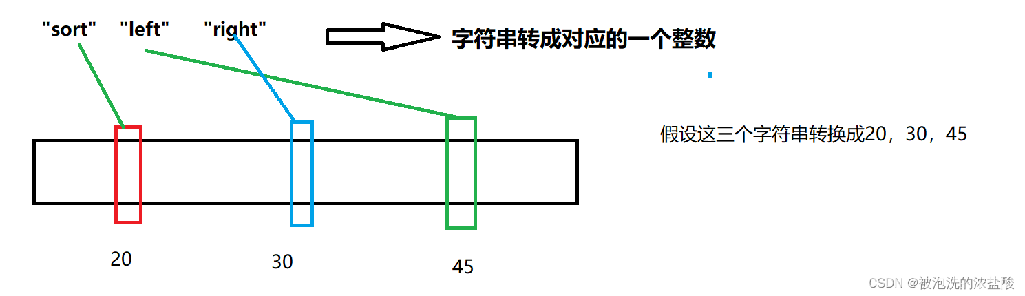 假设这三个字符串转换成20,30,45。当遇到sort,它对应的是20,去找它在不在,在就是1,不在就是0。
