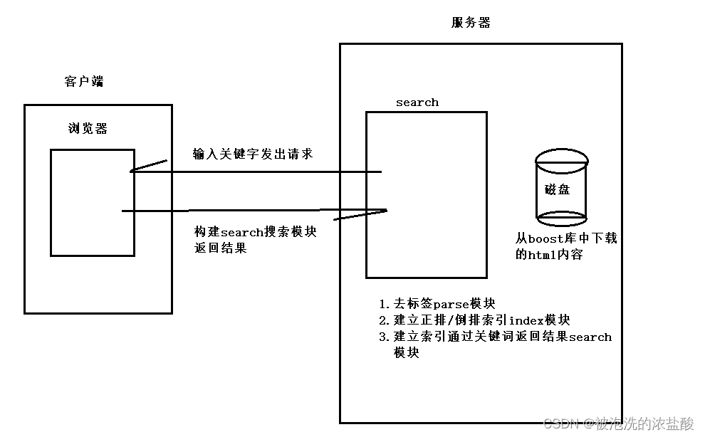 技术栈:C/C++,C++11,STL库,标准库Boost(主要处理一些文件),jsoncpp(序列化反序列化),cppjieba(搜索内容分词)cpphttp-lib(帮我们写http),html5,css,js,jQuery,Ajax.