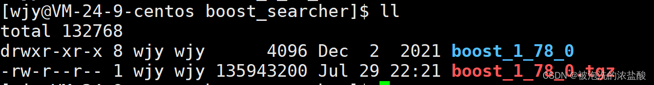 上传好之后通过tar xzf boost_1_78_0.tar.gz解压,在boost_searcher中形成了一个目录,这个目录中保存了所有boost内容。