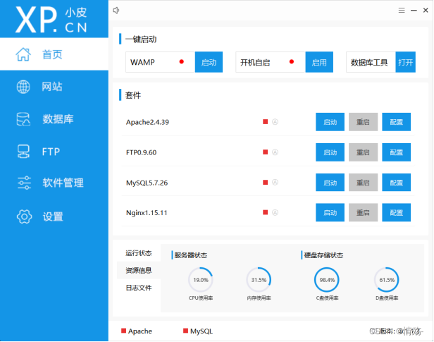 phpStudy V8版本安装完成后我们可以看到如下界面: