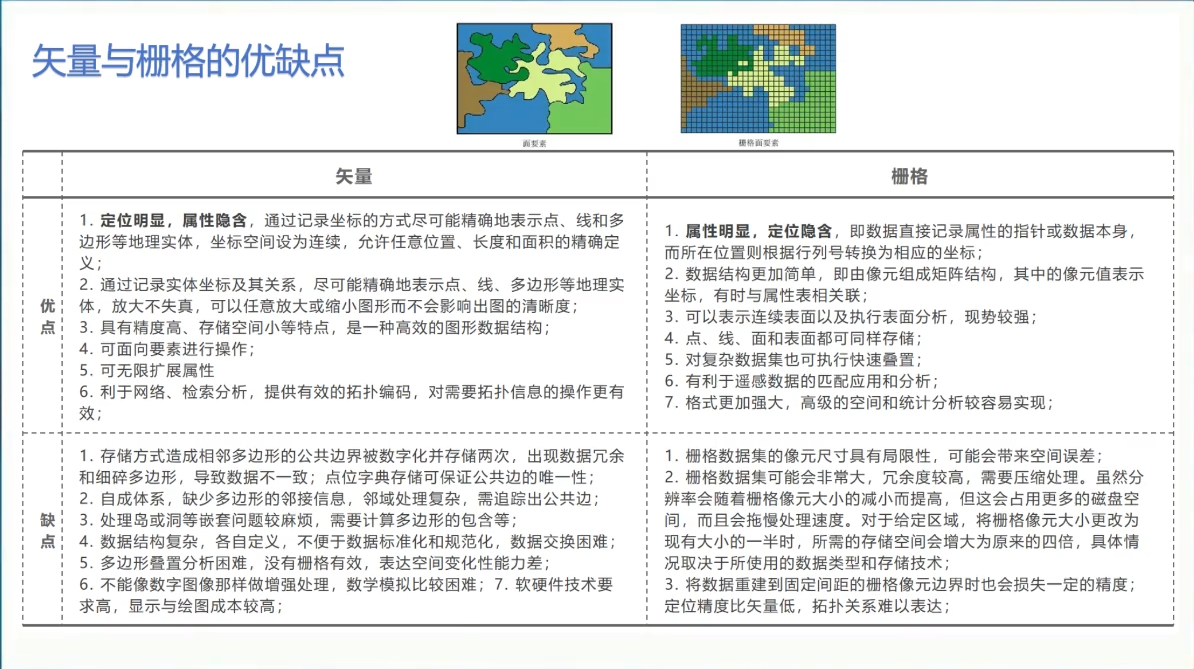 栅格精度低 获取成本低 占用空间大 容易堆叠计算