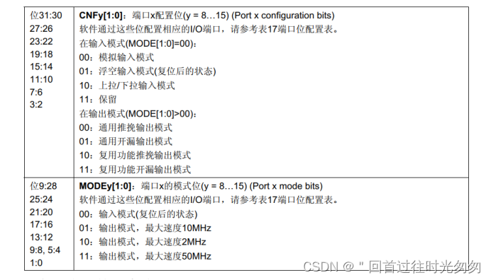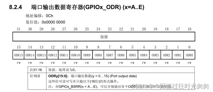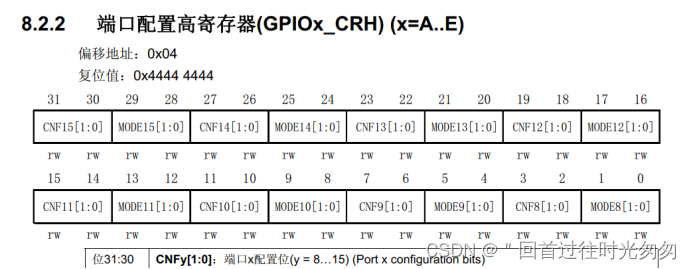 在中文参考手册的8..2.2中找到端口配置高寄存器(GPIO_CRH),偏移地址为0x04