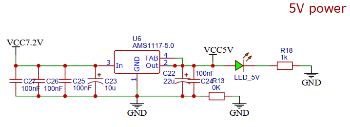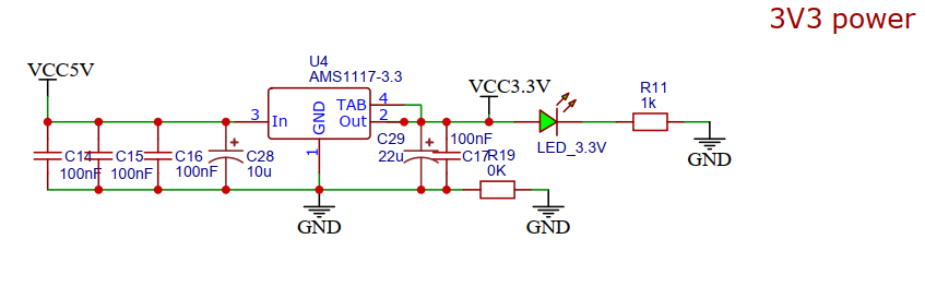 图 AMS1117——3.3V稳压(左) AMS1117——5V稳压(右)