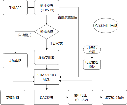 (五)DAC模块:DAC模块是数字信号与模拟信号转换电路,向它发送数字信号时,能够输出0-1.5V的电压值,从而改变眼镜的颜色。