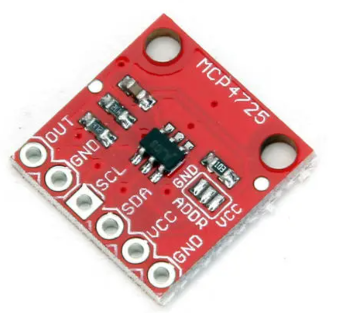 本产品采用MCP4725芯片制成的DAC模块,MCP4725是低功耗、高精度、单通道的12位缓冲电压输出数模转换器,具备非易失性存储器(EEPROM),用户可使用I2C接口命令将DAC输入和配置数据烧写到EEPROM中,实现数模转换功能。