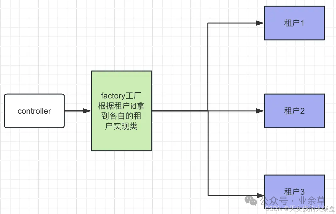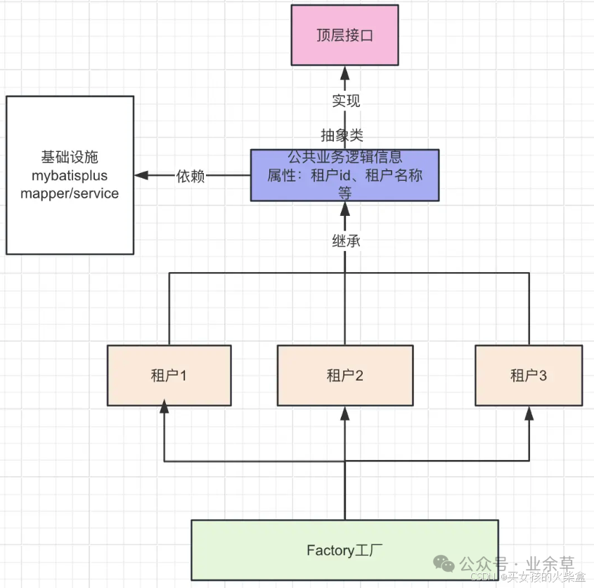 ,对于一些租户公共的业务逻辑行为,提取为抽象类,具体的细节差异由各个租户各自实现。 -