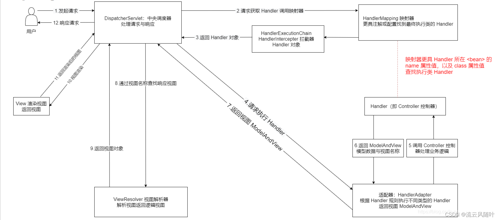 注意:编写Handler时按照HandlerAdapter的要求去做,这样适配器才可以去正确执行Handler。- 视图解析器 ViewResolver(不需要程序员开发)