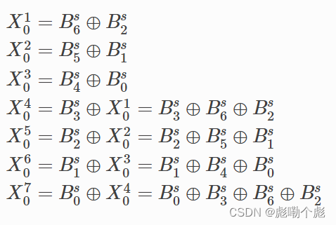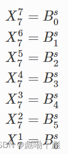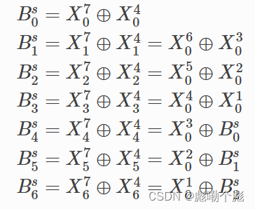 首先,我们可以计算初始状态。由于前 7 个未加扰位(B0 to B6) 均为零,则扰码位可由下式获得: