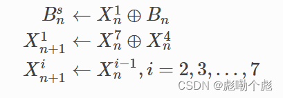 第二种解释是:前7个加扰比特是这7个比特加扰后的状态。换句话说,我们有: