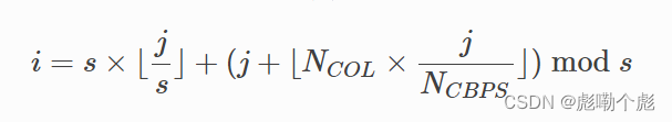 这里先介绍了交织再介绍了反交织,前俩公式是交织的过程,后面俩才是解交织。交织分为两步,一个是把原本的数据流按行排列,再按列取出,这时候原本的数据已经乱了。第二步是在映射到星座图的时候,把相邻的码位映射到星座图中的对角线位置。解交织是前面的逆过程,先把码位从星座图上排列下来,再按列排,按行取,以恢复原本的顺序。