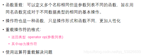 运算符重载的实质是编写以运算符作为名称的函数。不妨把这样的函数称为运算符函数。运算符函数的格式如下: