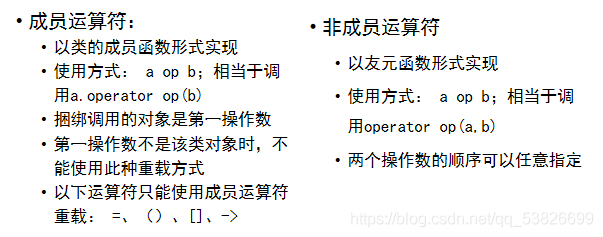 运算符可以被重载为全局函数,也可以被重载为成员函数。一般来说,倾向于将运算符重载为成员函数,这样能够较好地体现运算符和类的关系。