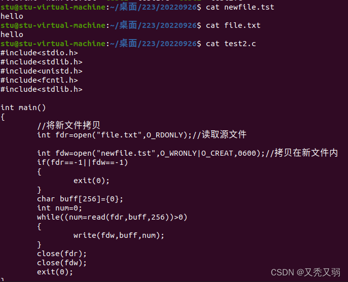 - 对主函数添加参数实现自己的cp命令