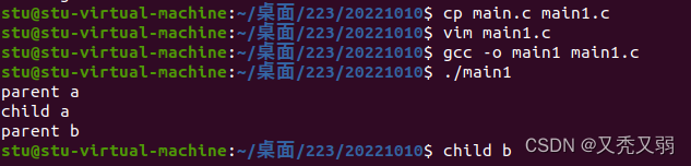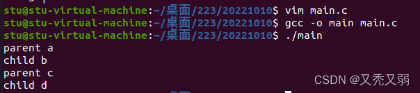 - 如下图所示fork()复制的过程, 父进程有pcb,fork复制一份pcb,然后把pcb里的pid的加1。父进程读一次,文件偏移量+1,子进程读一次,+1,因此打印的结果是abcd