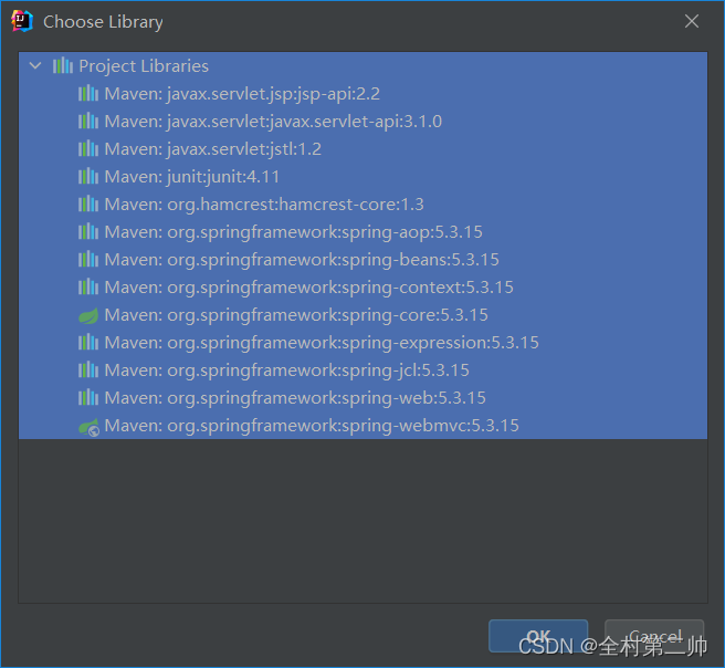2、点击“+”,将所有的依赖添加进lib文件夹里,点击“apply”,再点击“ok”即可