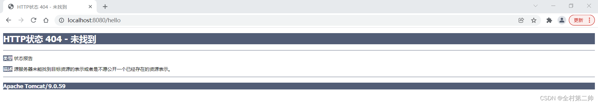 2、第二种情况:解决好第一种情况后,发现在地址栏输入:/hello,仍然找不到页面