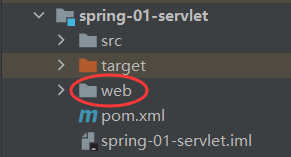 这时我们检查文件目录,发现 子模块下的web文件夹出现异常,web包上的蓝色原点不见了,这是由于系统没有识别到web文件导致
