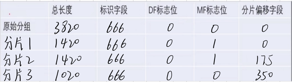 片偏移字段:分片距初始位置距离,单位为8字节(计算时记得/8)
