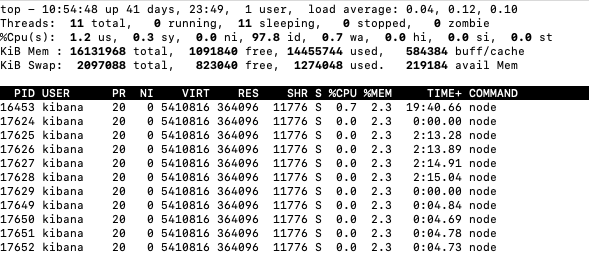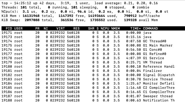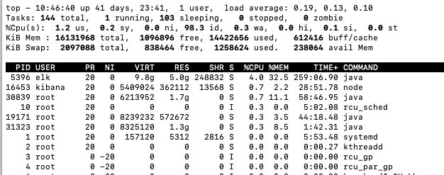 第一行:当前时间、系统启动时间、当前系统登录用户数目、平均负载(1分钟,10分钟,15分